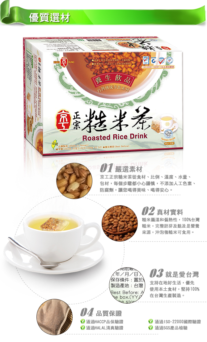 1.將糙米茶放入燜杯內,再加入500cc熱開水,燜泡25分鐘即可飲用。