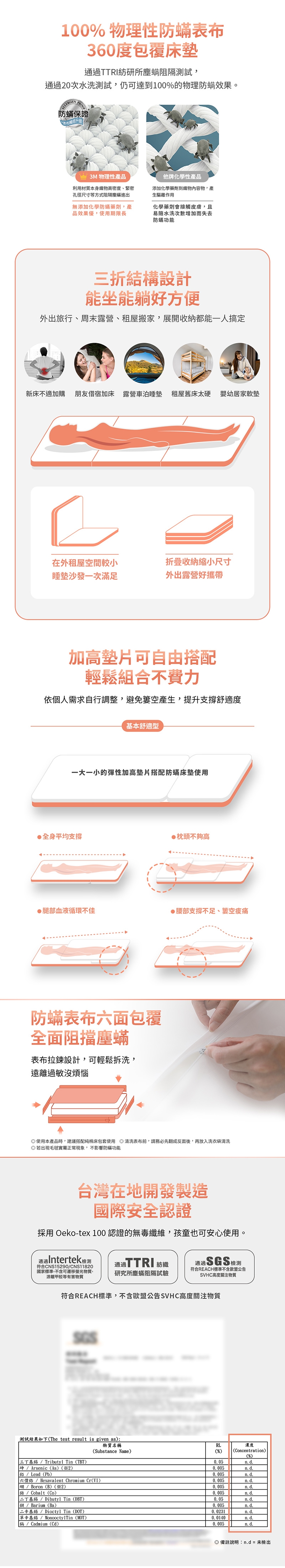 *通過TTRI紡研所塵蹣阻隔測試,100%物理性防蹣。