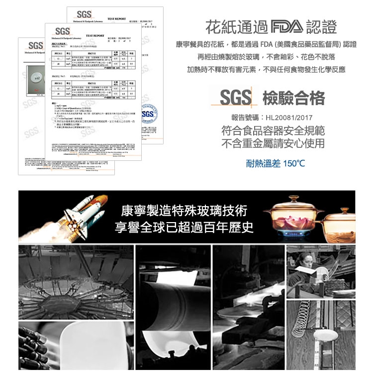 ※康寧餐具由一種稱為Vitrelle的特殊玻璃製成,是一種耐撞擊的餐具。但所有玻璃的玻璃製品都會破裂請小心使用。