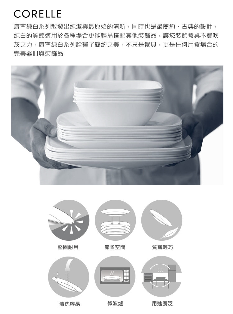 ※康寧餐具由一種稱為Vitrelle的特殊玻璃製成,是一種耐撞擊的餐具。但所有玻璃的玻璃製品都會破裂請小心使用。