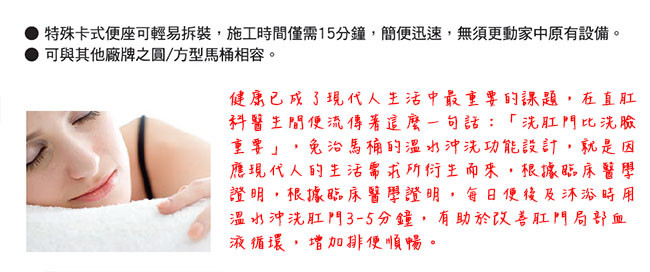 ◆愛潔人:常用溫水沖洗,可常保肛門、下身潔淨,預防細菌感染及痔瘡發生。