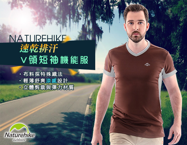 【Naturehike-NH】速乾排汗V領短袖機能服-男款