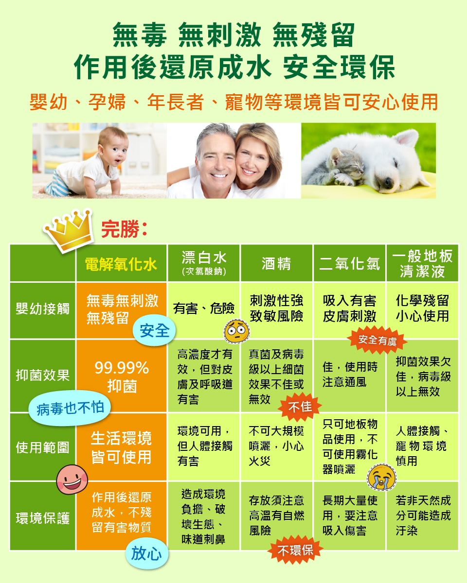 主要成分:Plus Bio-Tech電解氧化水。非漂白水,不含酒精、三氯沙、氯己定、鋁鹽與化學香料等成分。