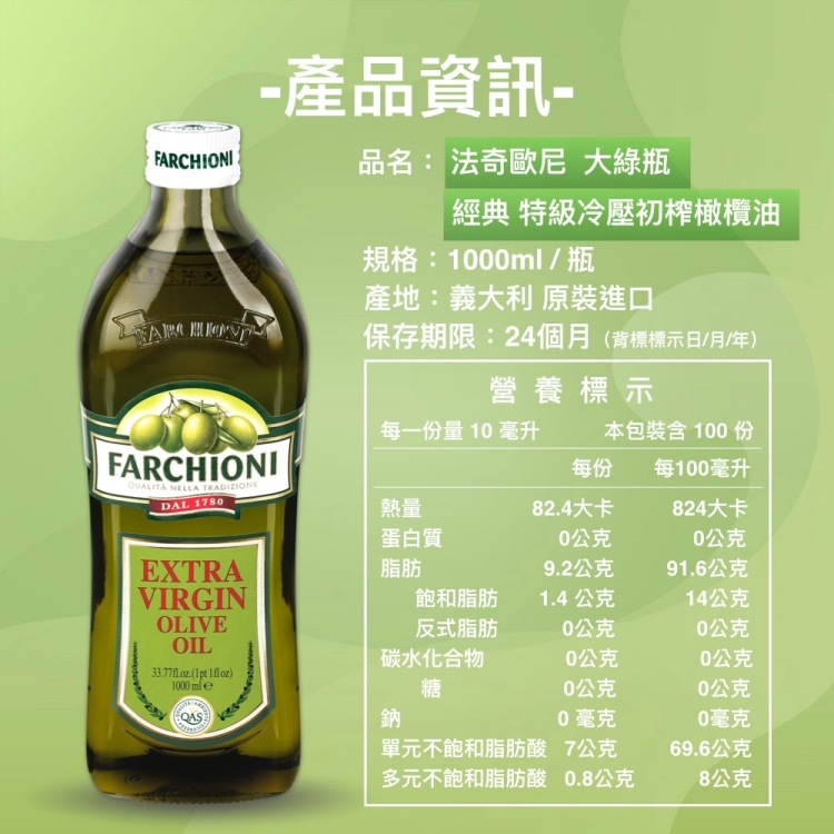 經典特級冷壓初榨橄欖油1000ml大綠瓶X4入