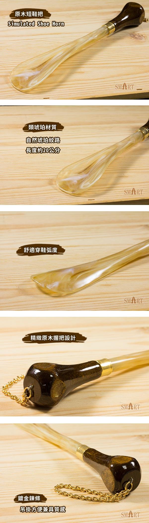 功能:類琥珀材質鞋把,原木握柄,附吊掛功能鍍金鍊條。