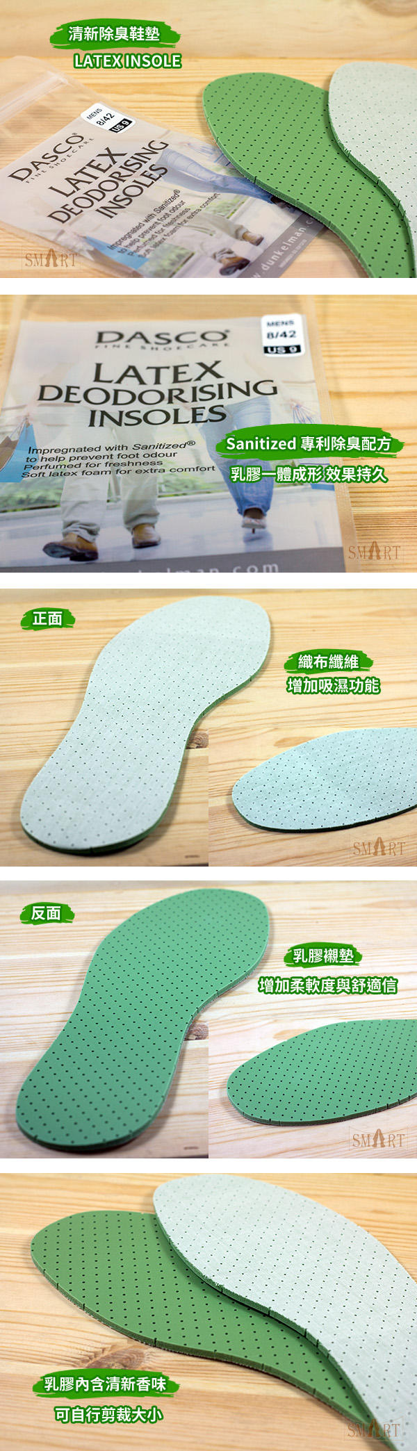 乳膠內含清新香味.減少穿鞋時產生臭味。