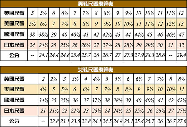 女 英碼UK4(歐碼EU37) / 英碼UK5(歐碼EU38) / 英碼UK6(歐碼EU39)