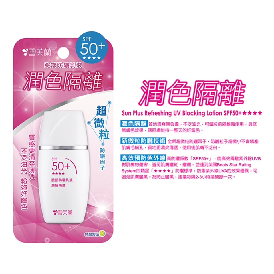 v 新微粒防曬技術:全新超微粒防曬因子,防曬粒子超微小不會堵塞肌膚毛細孔,質感更清爽薄透。