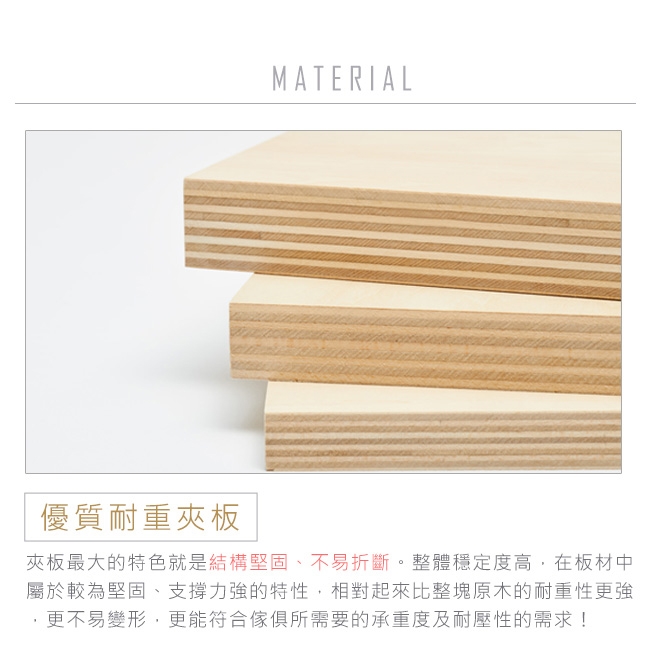 ‧採用優質六分夾板,整體穩定度及耐重性都比整塊原木更高,更加安全!