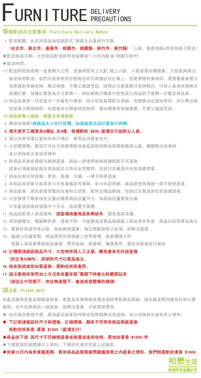 -●大型商品7-10天內到達(例假日除外),如需晚間或假日配送,請於訂單上先行註明以協調配送時間。