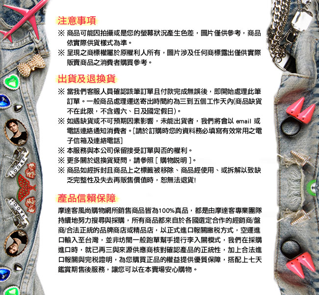 ● 所有商品均為新品,如有污損、短缺、或與訂購商品不符外,其餘恕不接受退換貨。