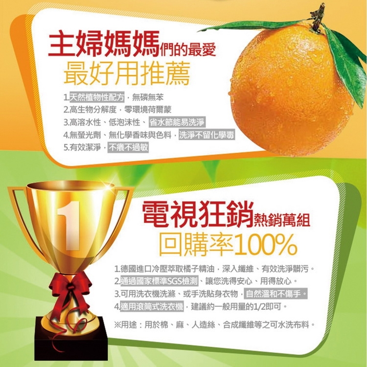衣桔棒天然橘油洗衣粉