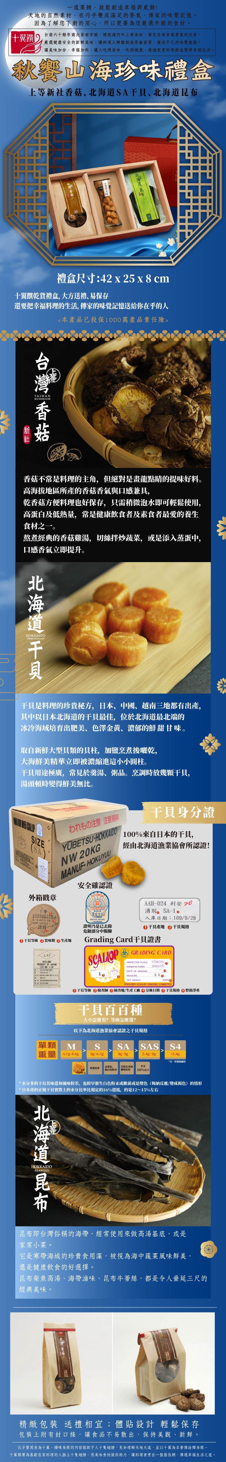 干貝:使用前請用熱水浸泡1小時,待食材軟化後可再蒸煮20分鐘,隨後進行料理。干貝水可作為高湯基底。