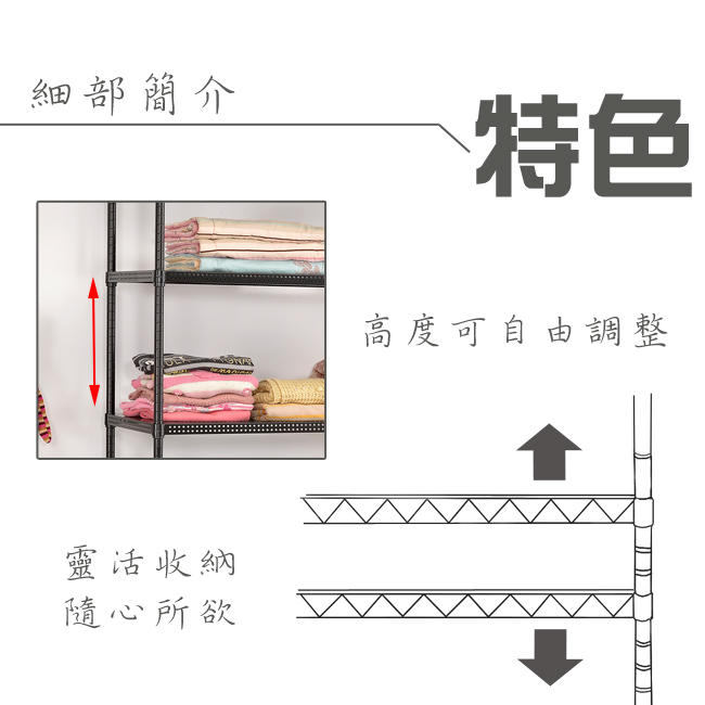品名:金鋼-60*45*150四層鐵架/沖孔鐵架/置物架-烤漆黑