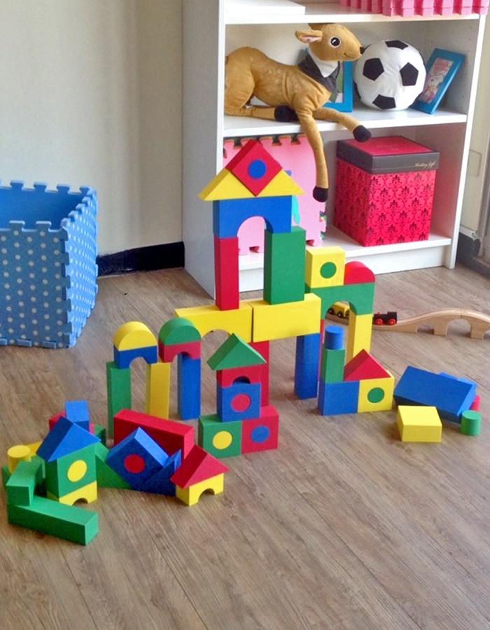 積木玩具由EVA軟性材質製作而成,不同於一般市售樂高玩具