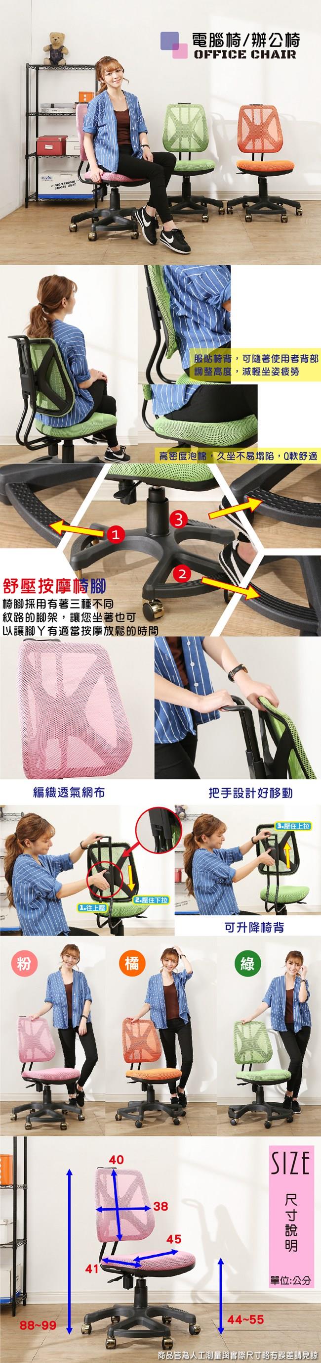 現代人待在辦公室的時間遠比待在家裡的時間長,一款舒適的辦公椅就扮演著相當重要的角色。此款『BuyJM萊恩繽紛高密度泡棉升降椅背辦公椅/電腦椅/三色可選』,不同於市面一般款式的電腦椅,超透氣網布椅背,專門為了現代人長久姿勢不良所設計。椅背可以依身高、背長上下調整高度,符合人體工學設計,能讓背部倚靠椅背時能達到最適當的服貼,調整坐姿的不良。氣壓式升降,可調整座墊高低。如此符合人體工學的椅子讓您在辛苦工作過後,更可輕鬆享受放鬆的身心的快樂時光。『BuyJM萊特繽紛高密度泡棉升降椅背辦公椅/電腦椅/三色可選』絕對是您最佳選擇,男女皆適宜。現在買還有專人送到府,這麼優質的選擇,您千萬不能錯過!