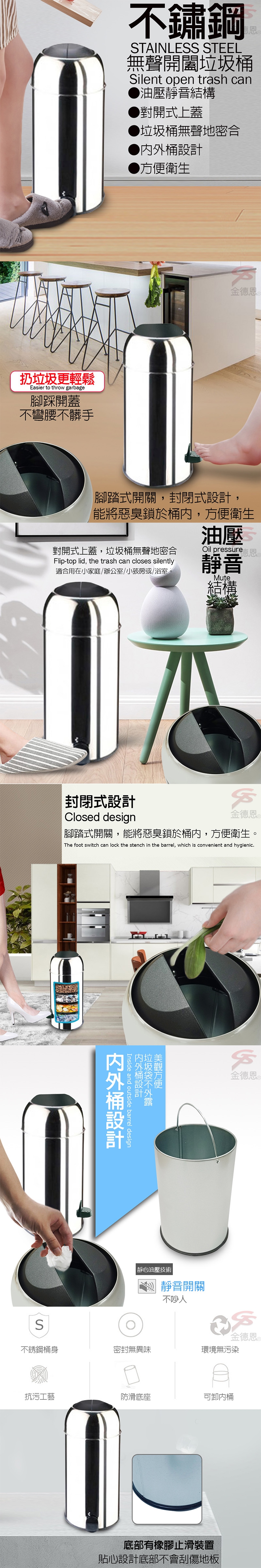 ●內外桶設計,垃圾袋不外露,美觀更耐用