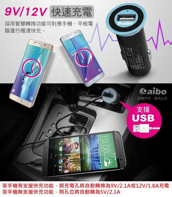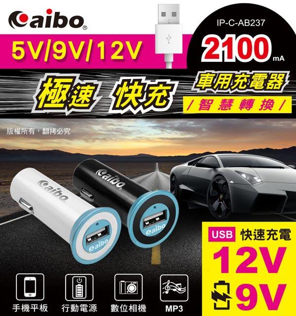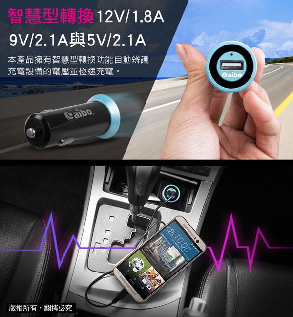【aibo AB237 USB智慧轉換極速快充車用充電器(2.1A)】