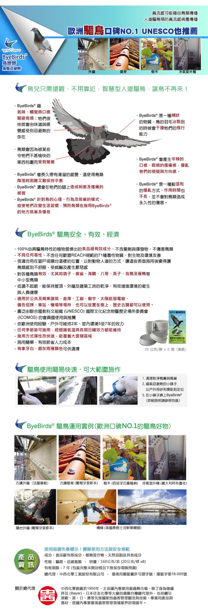 預防鳥類在施用ByeBirds®的地方築巢及棲息,不只驅鳥,也預防他們築巢!