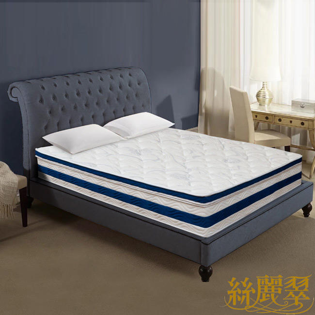 【特色五、頂級纖維舒柔布】淺藍色系舒柔棉感表布,結合加厚式彈力泡棉展現床墊立體的車縫感,增加睡眠時的舒適度