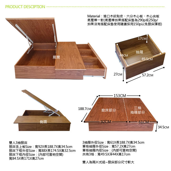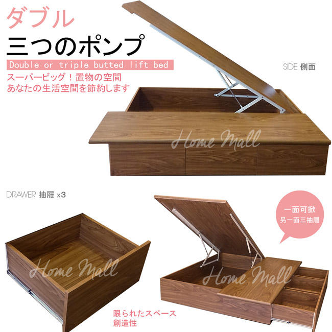• 單邊為單人掀床設計,單邊為三抽抽屜設計
