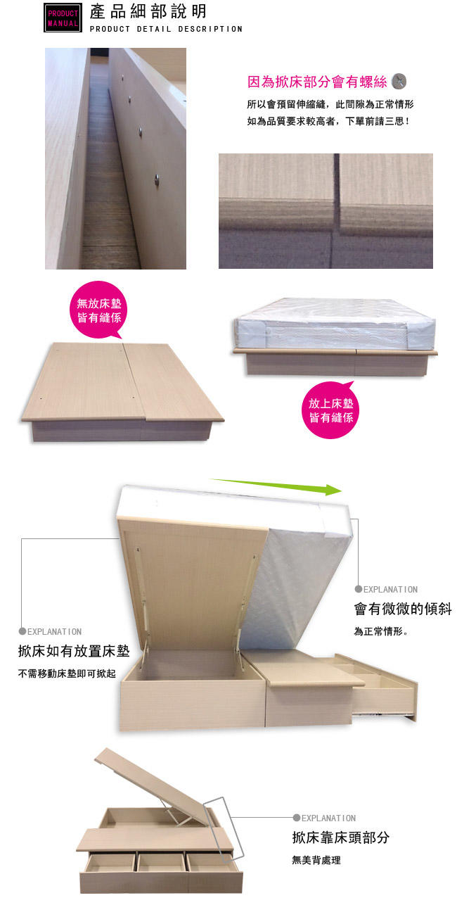 • 出貨商品僅含雙人5尺抽屜+掀床床底(不含情境商品)
