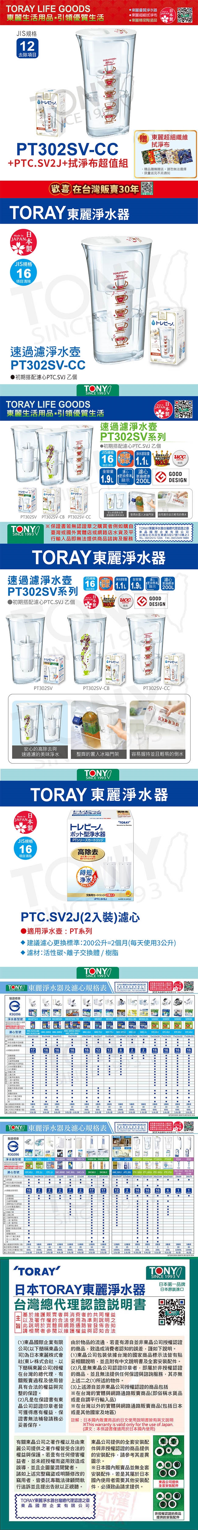 日本東麗 速過濾淨水壺0.4L/分+濾心+拭淨布超值組 PT302SV-CC+PTC.SV2J(總代理貨品質保證)