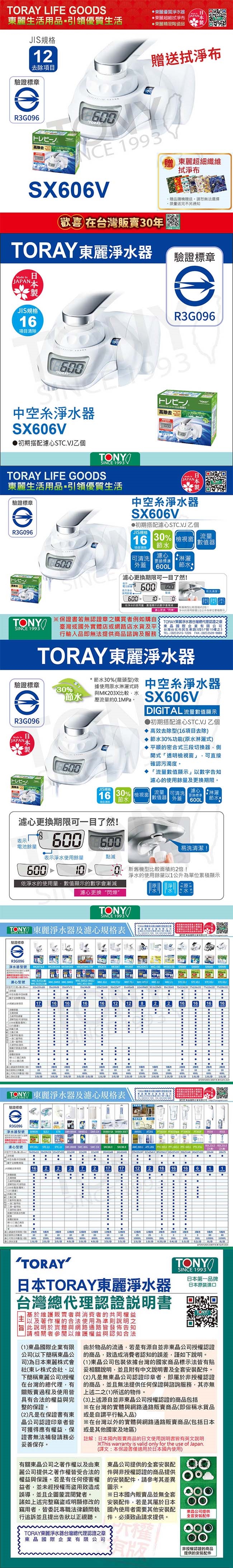日本東麗 家用淨水器1.6L/分 SX606V 贈送拭淨布(總代理貨品質保證)