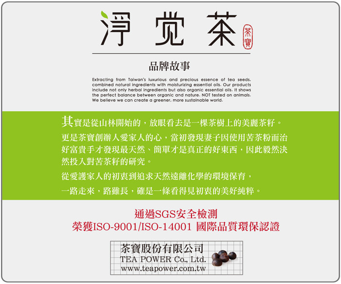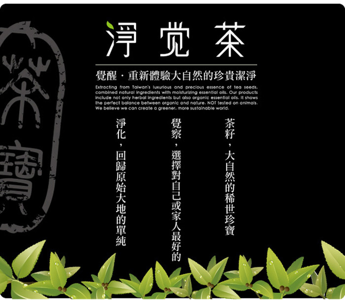 茶寶經典居家品牌-淨覺茶,精煉萃取苦茶籽精華,並濃縮為深茶色半透明茶籽液,