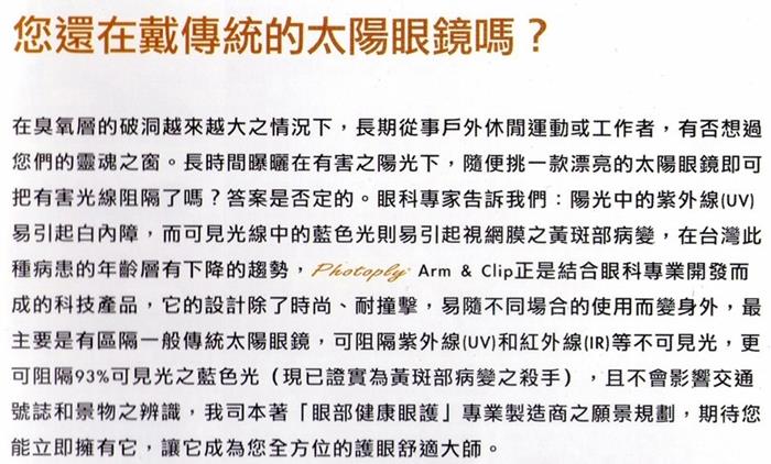 <以上這段擷自 博聞網:太陽鏡的技術>