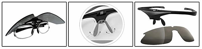 如果你習慣戴玻璃鏡片,可以另外加上一片夾式(磁鐵式)的無度數的太陽眼鏡,既輕巧又方便。
