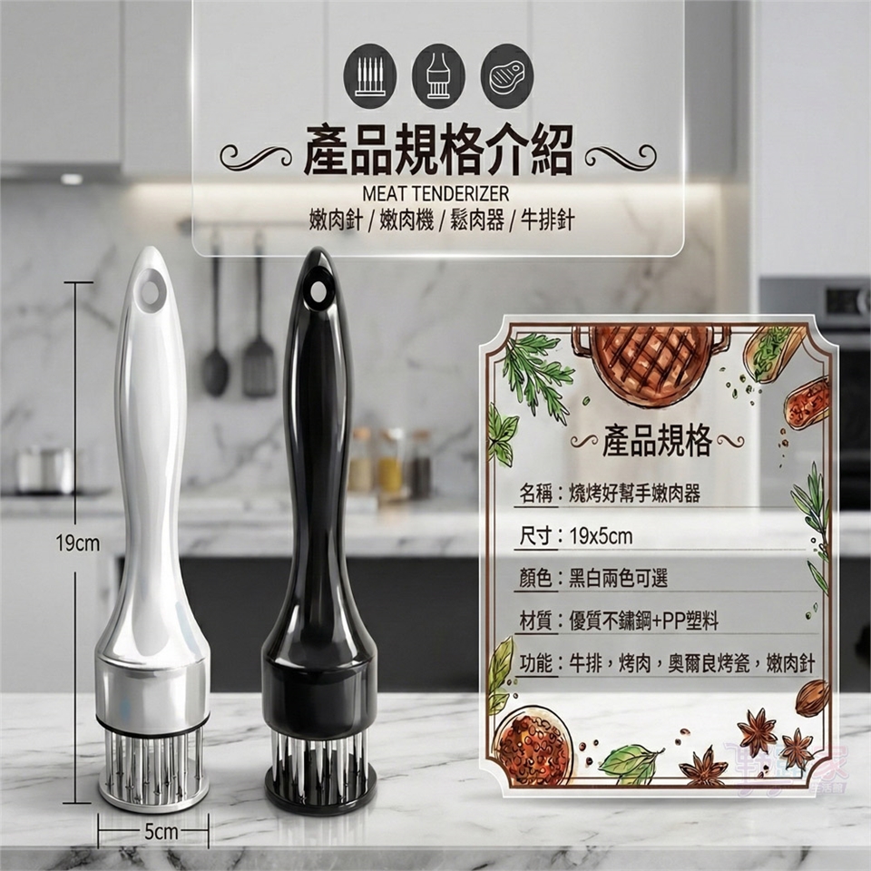 功能用途:物理斷筋、鬆肉、幫助醃漬入味