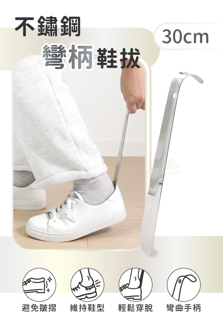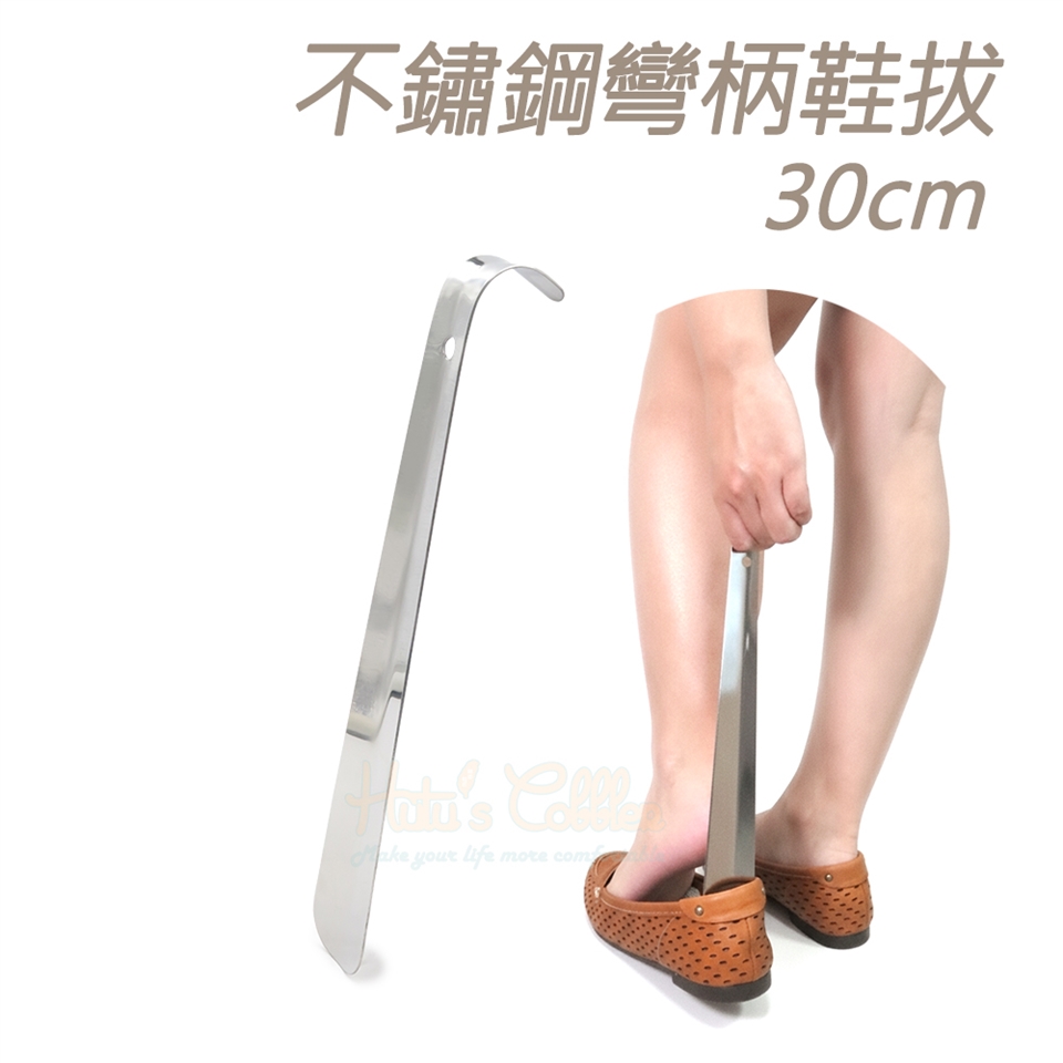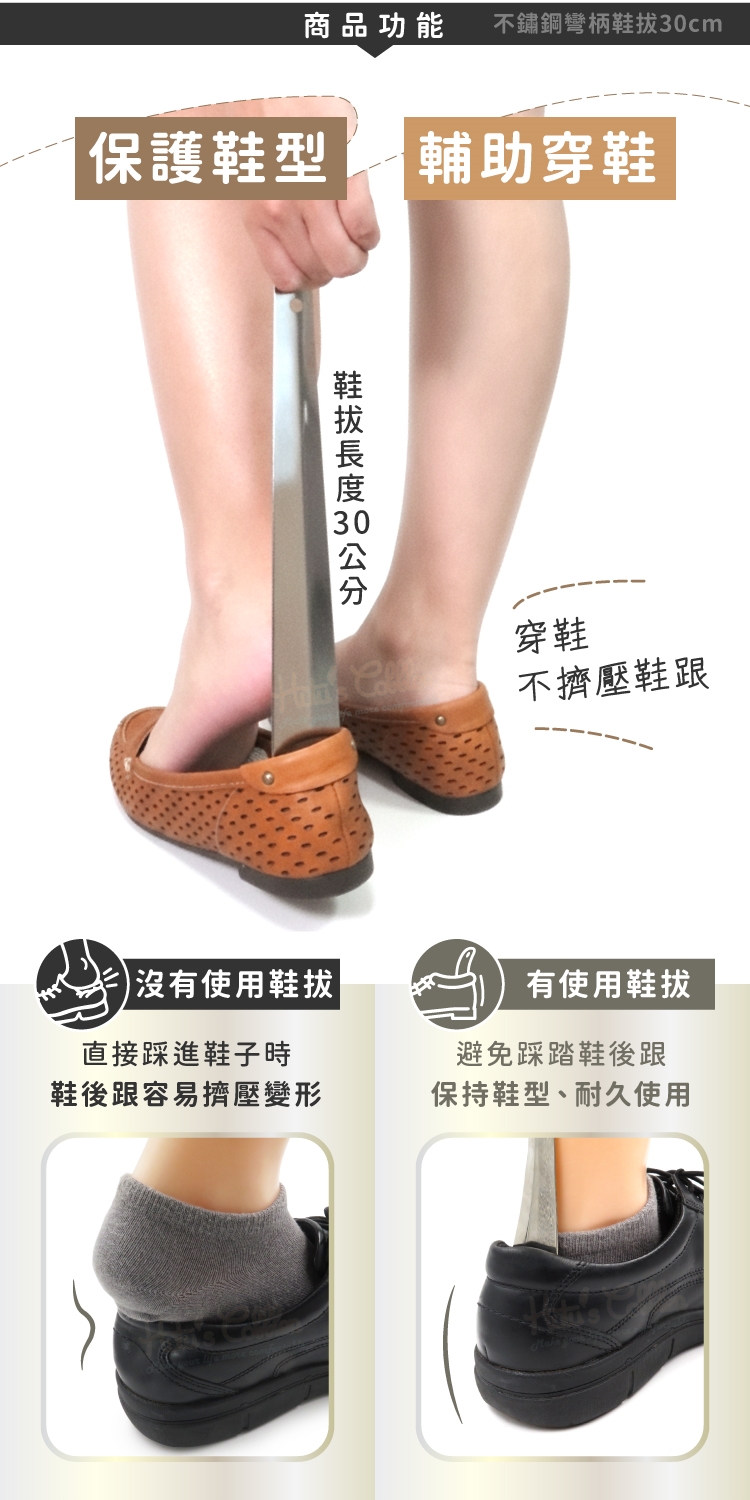 使用鞋拔前需先解開鞋帶與鬆開鞋面