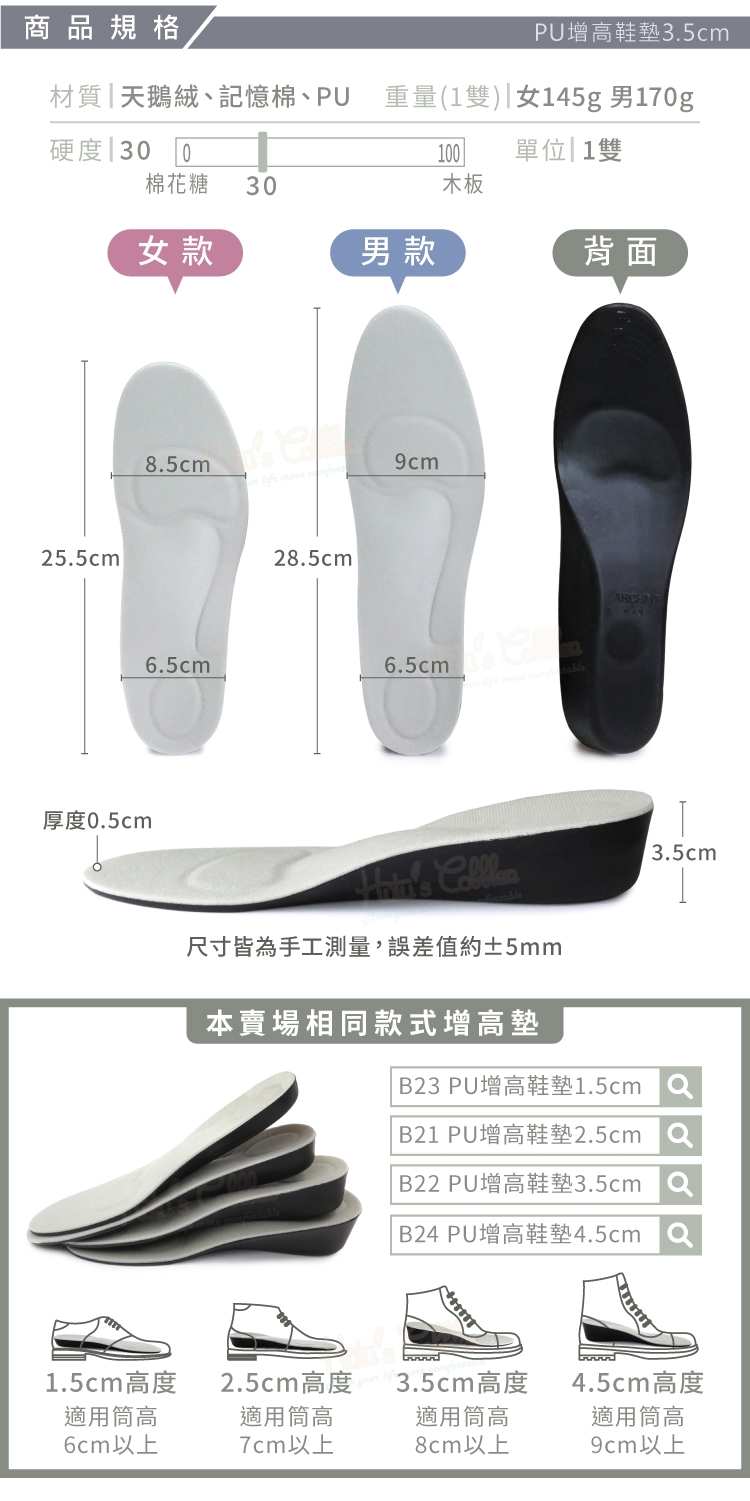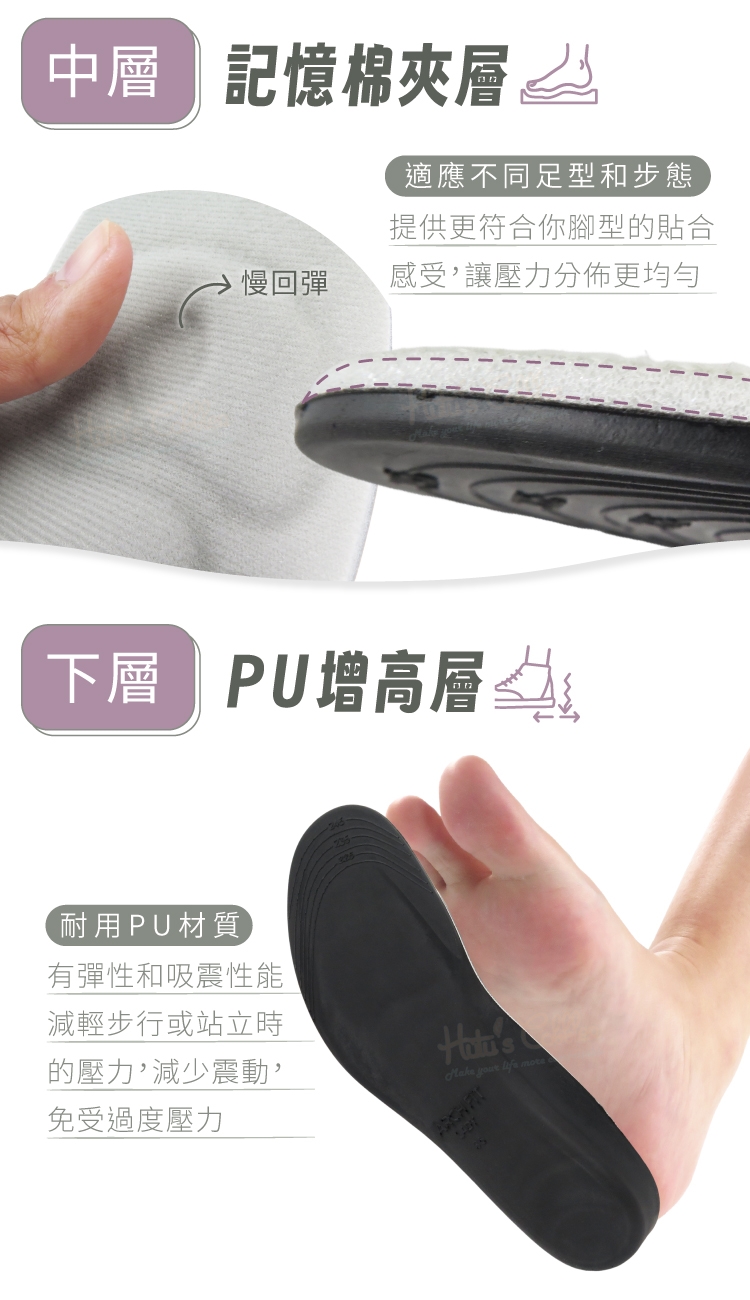 PU增高層,耐用PU材質,有彈性和吸震性能,
