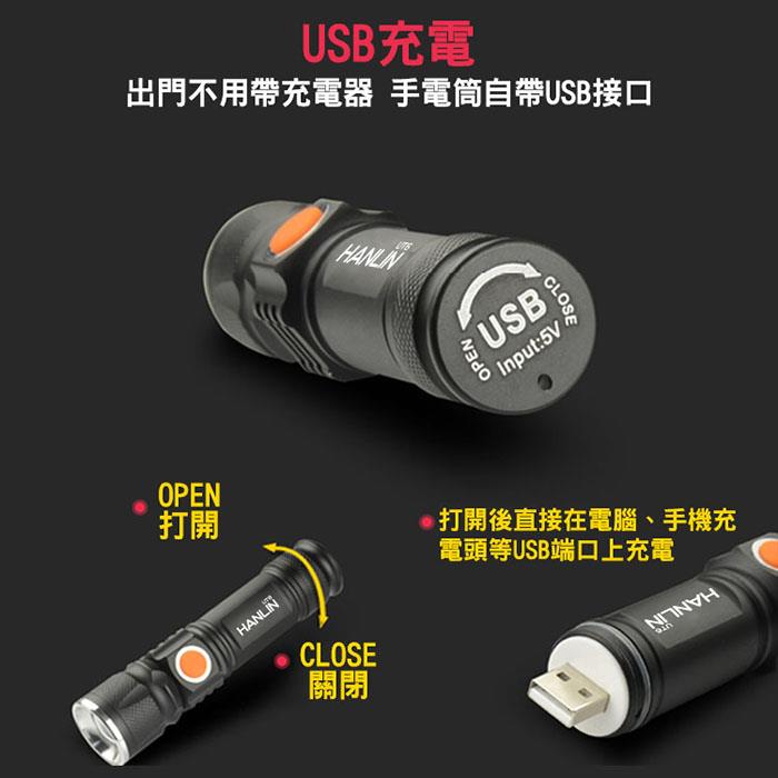 品名:HANLIN變焦(USB直充)小型強光手電筒