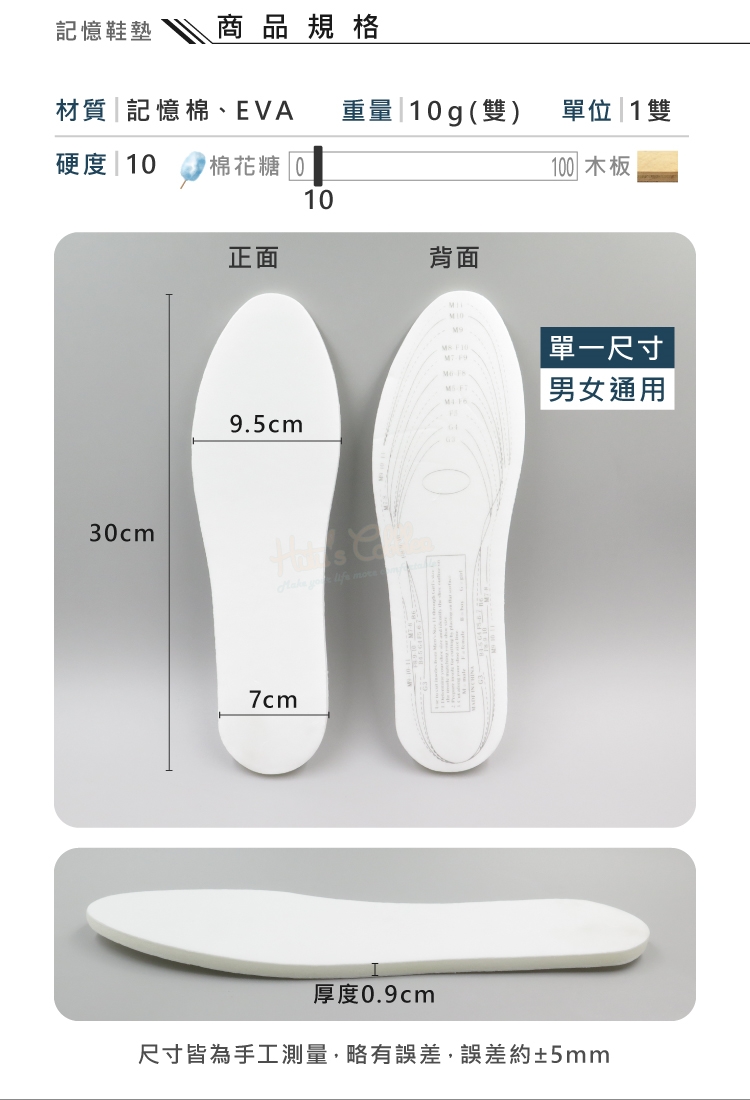 尺寸:長30cm 前掌寬9.5cm 後跟寬7cm 厚度0.9cm