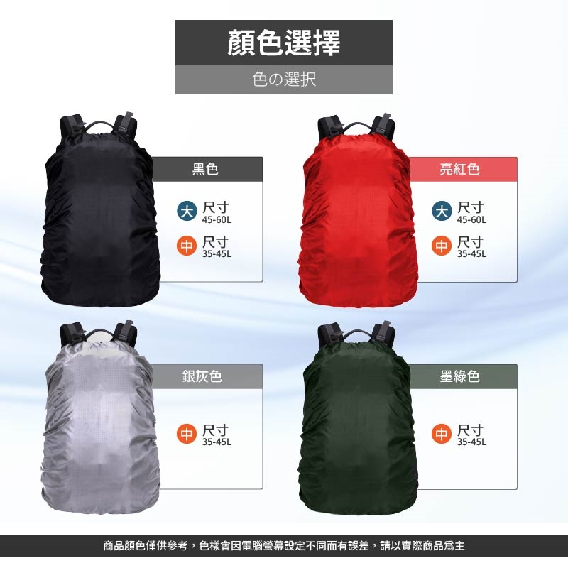 通用款(中款),適合市面上一般尺寸後背包、電腦包!雙層防水,彈性包邊可當防塵套使用。