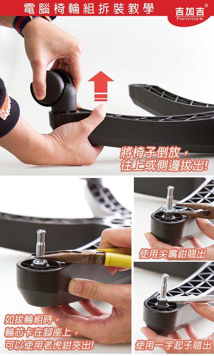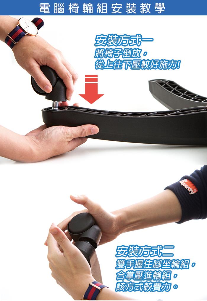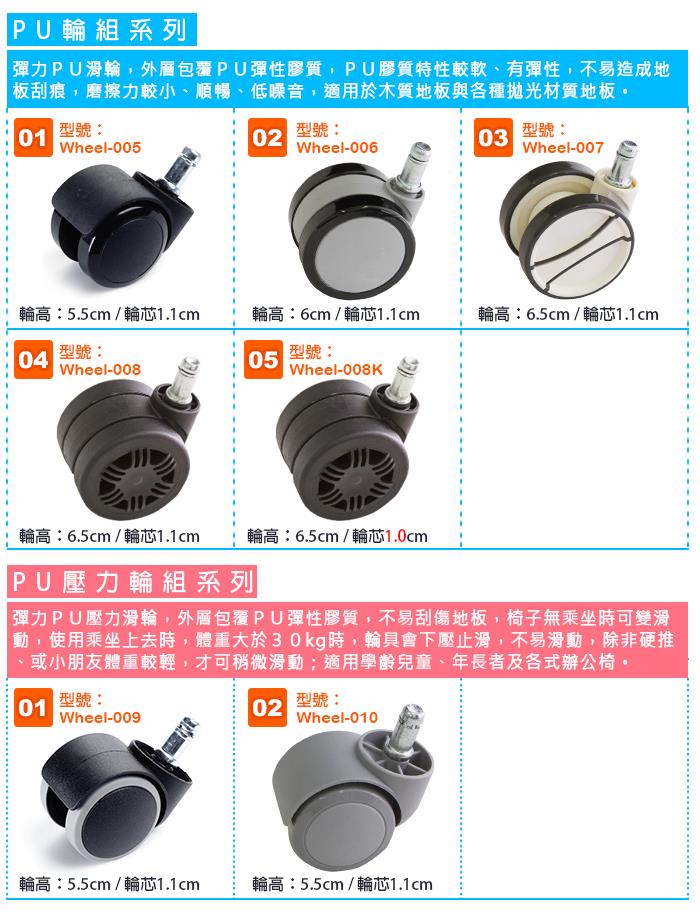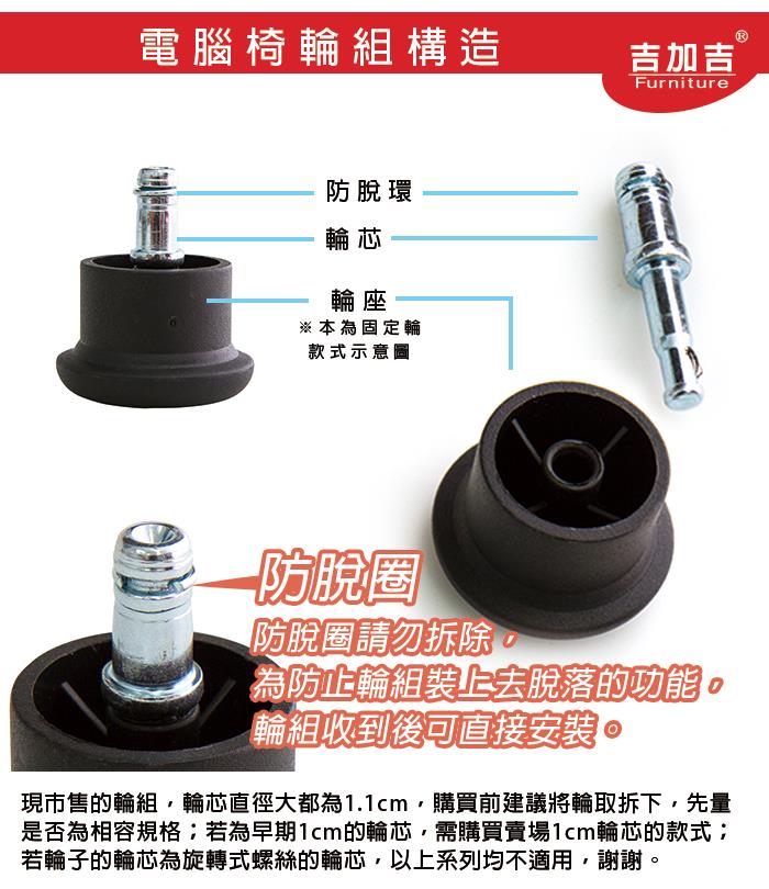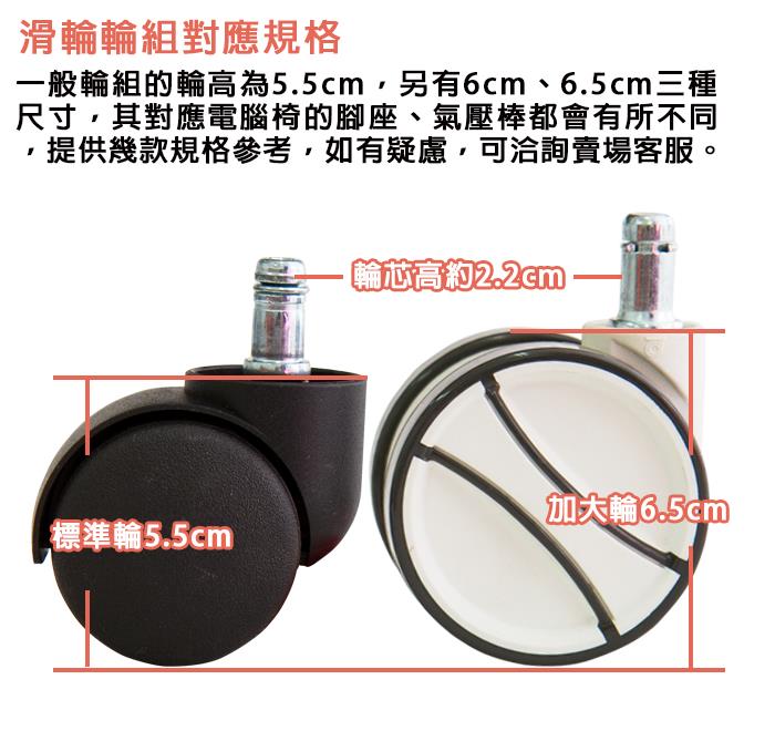 該類型電腦椅不可使用5.5cm的一般輪,容易發生上述說的,氣壓棒撞到地板。