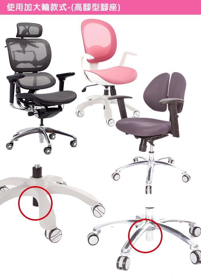 高腳座型的腳座,主要為外銷型高階電腦椅使用,通常都會使用加大的輪組,