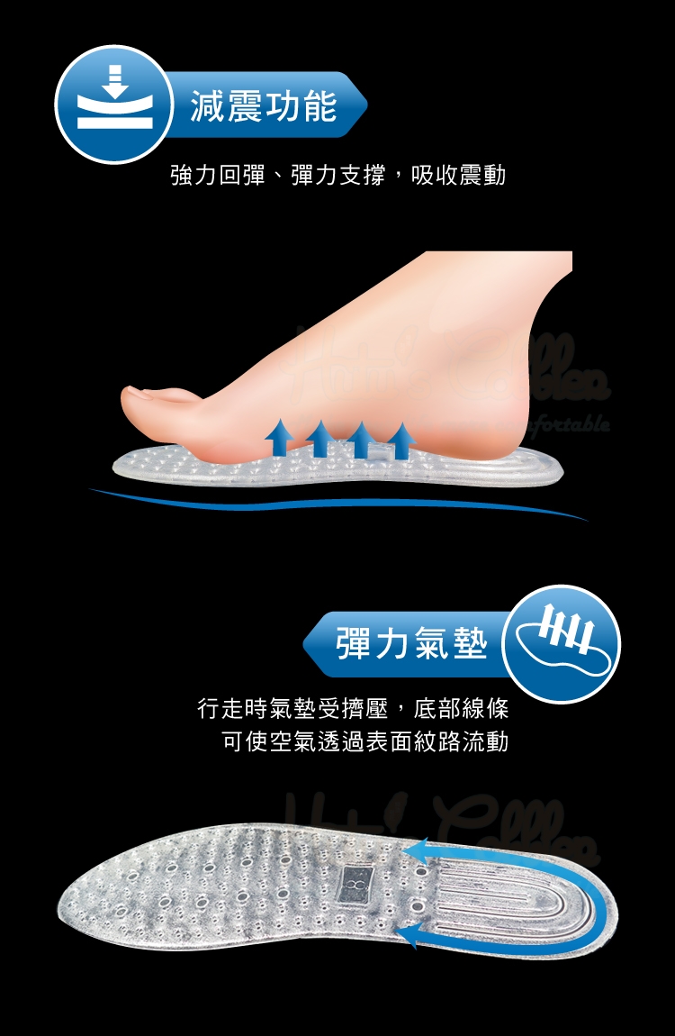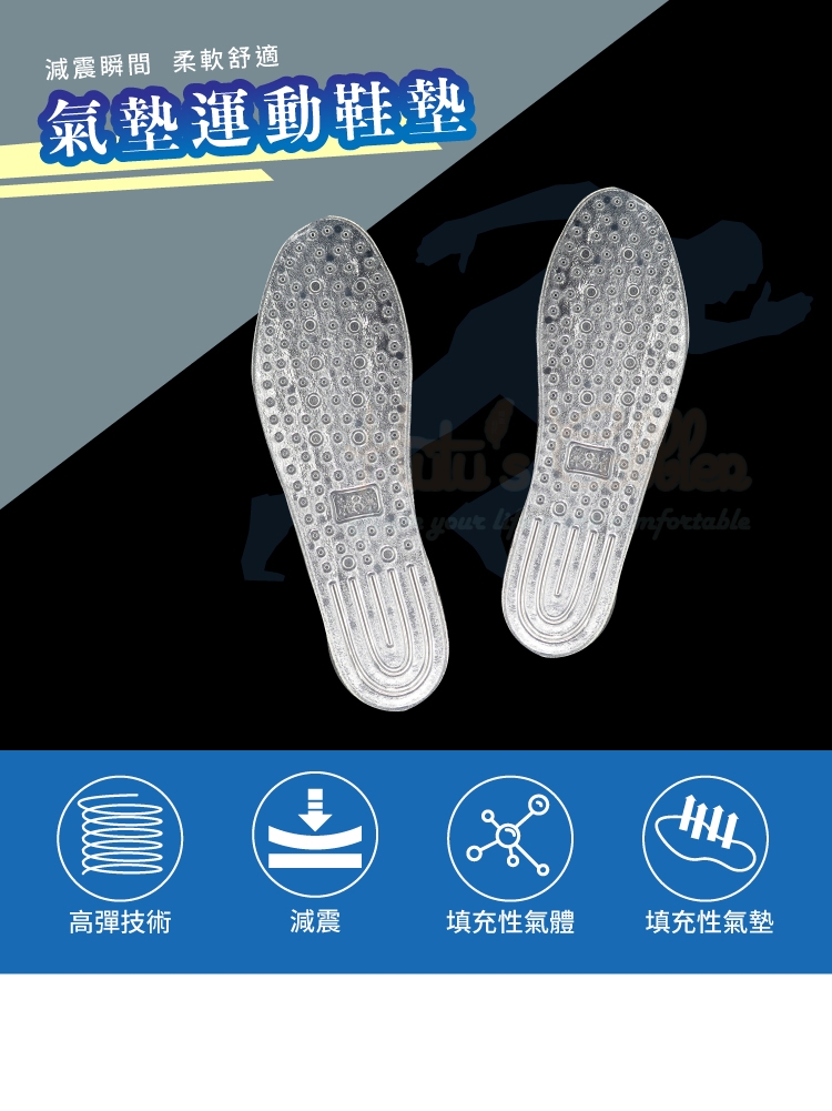 此款鞋墊為氣墊型鞋墊,裡面填充高壓填充性氣體,