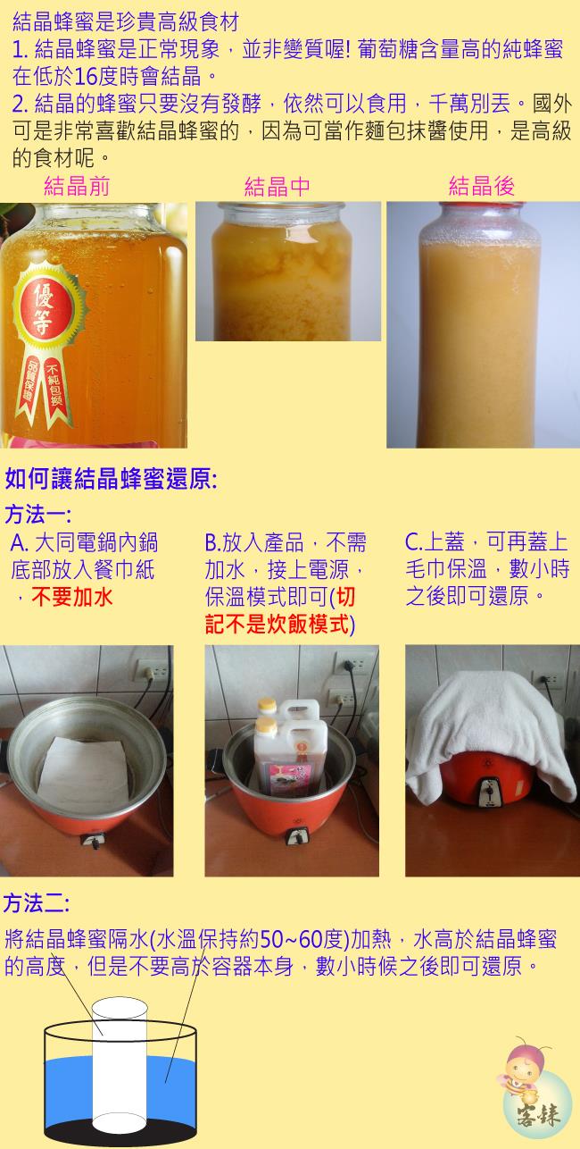 3.蜂蜜因富含礦物質與天然酵素 上層易產生少許白色泡沫為正常現象 敬請安心食用
