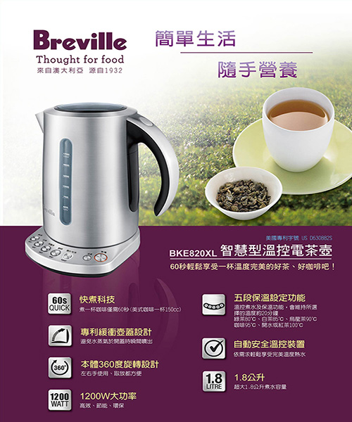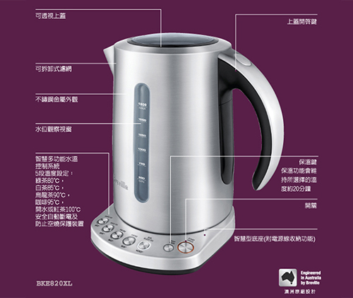 Breville鉑富經典 1.8L 智慧型控溫電茶壺 BKE820XL