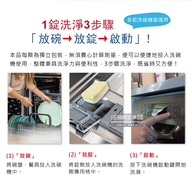 (2)將洗碗錠放入洗碗機的洗劑專用格中。