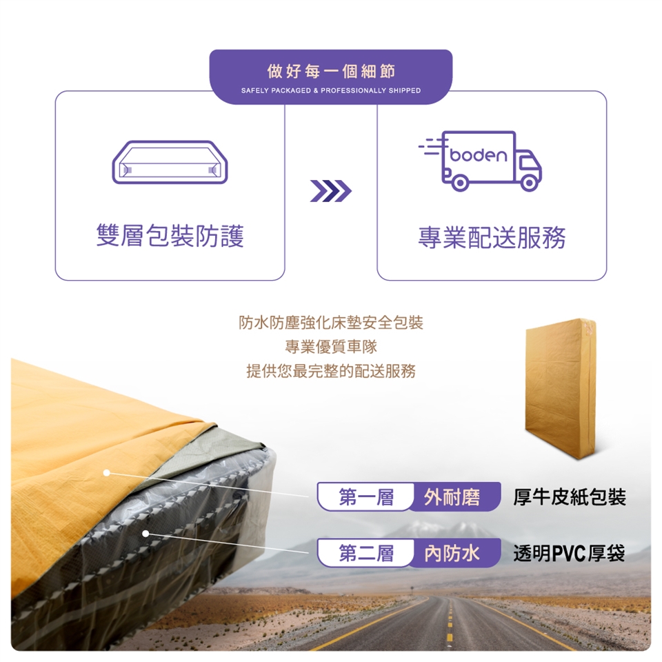 全系列床墊皆享有10年保固,給您最優質的售後服務,專人運送到府、定位服務。