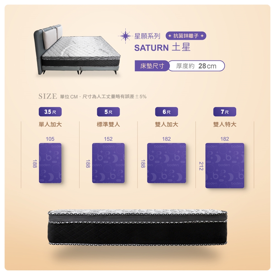(1)請務必實際測量床架內徑,確認此床墊尺寸是否合用。