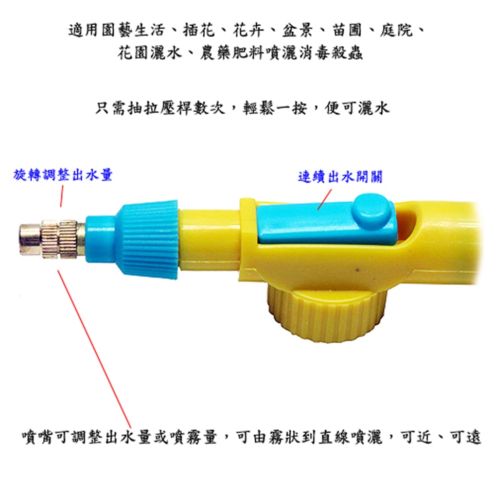 ■只需抽拉壓桿數次,輕鬆一按,便可灑水。