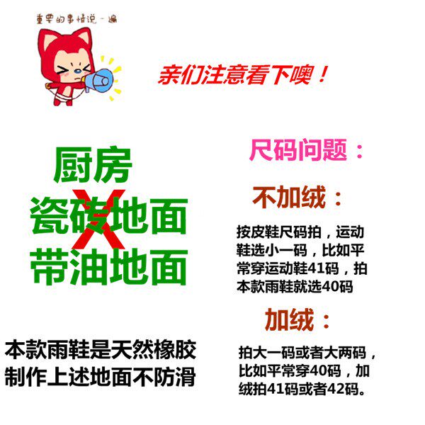 親們,為了方便你的購物,請仔細看下本店對本款雨鞋的介紹: