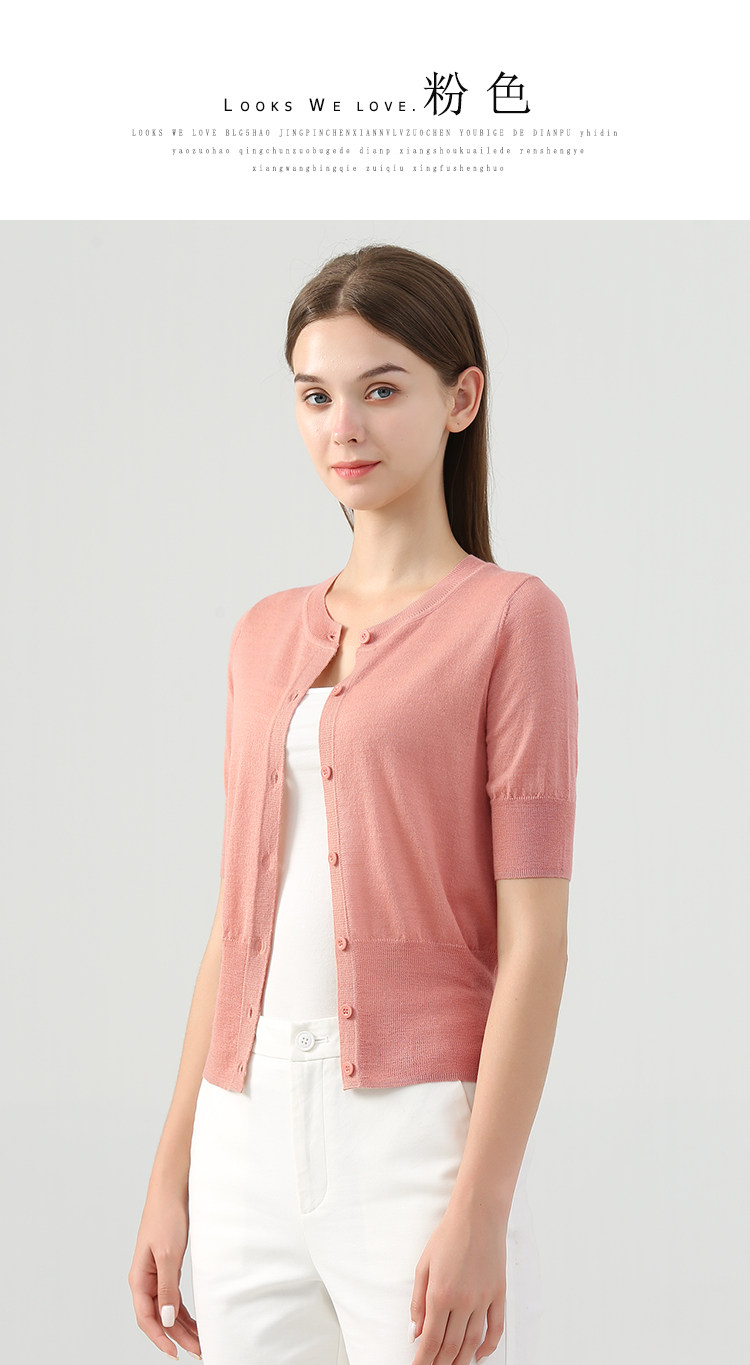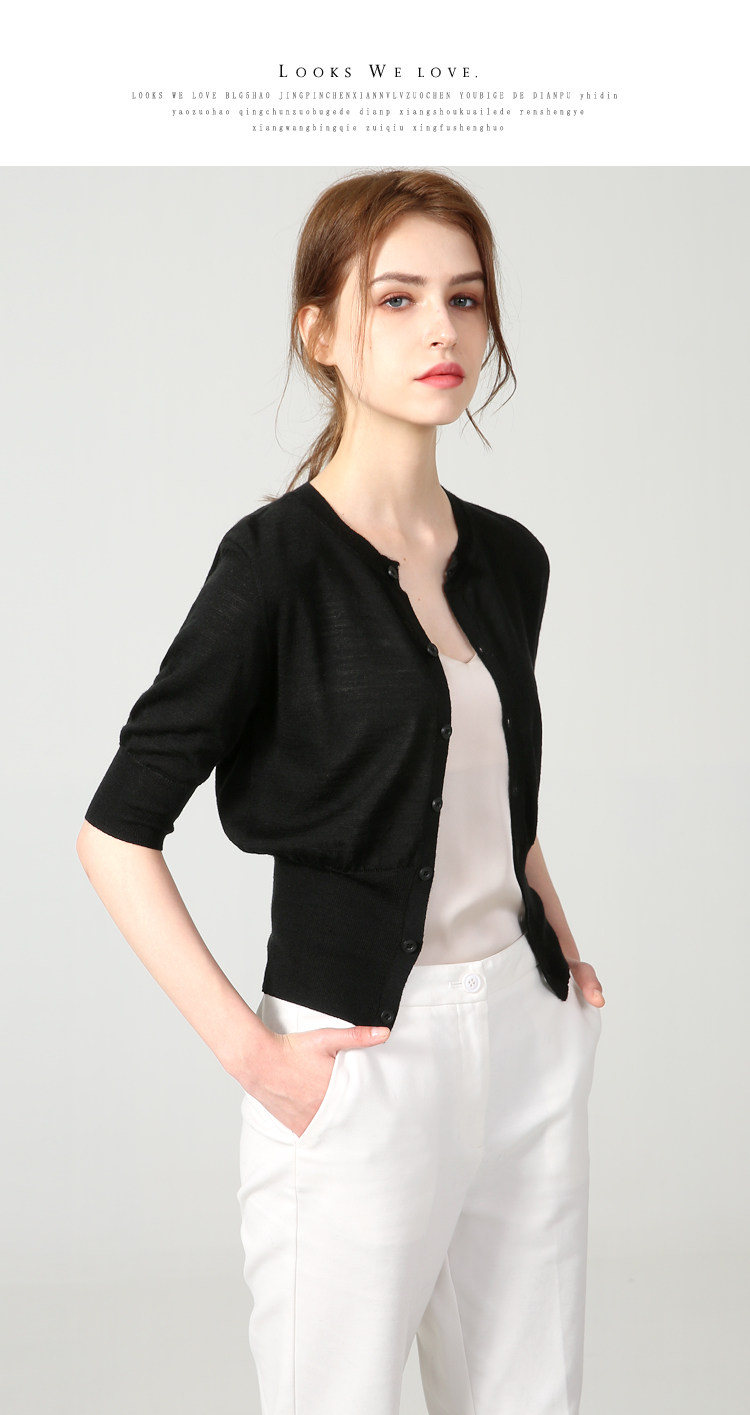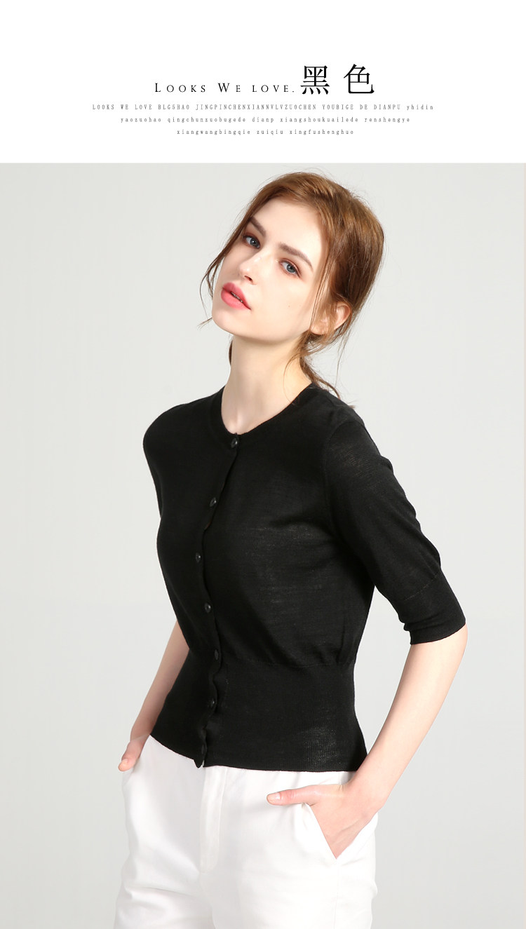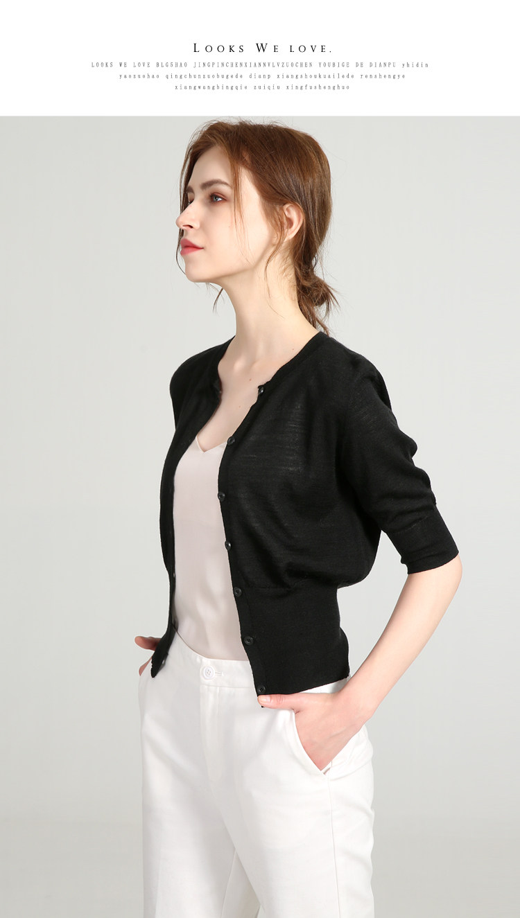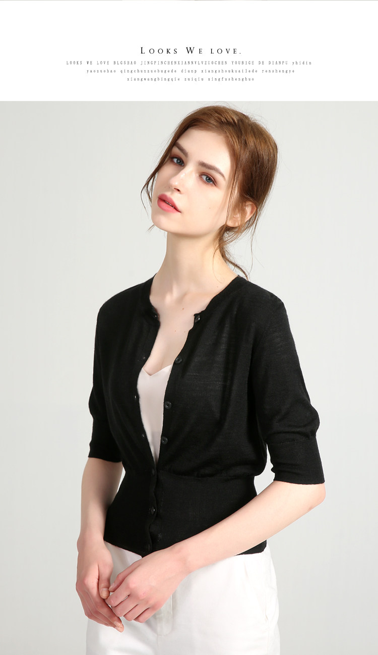 復古,美的內在氣質 短款,小圓領,自帶高腰線 上身效果顯高,顯瘦 針織衫小開衫,即是小外套,也是貼身上衣 超薄面料,舒適親膚,夏天穿涼爽透氣。