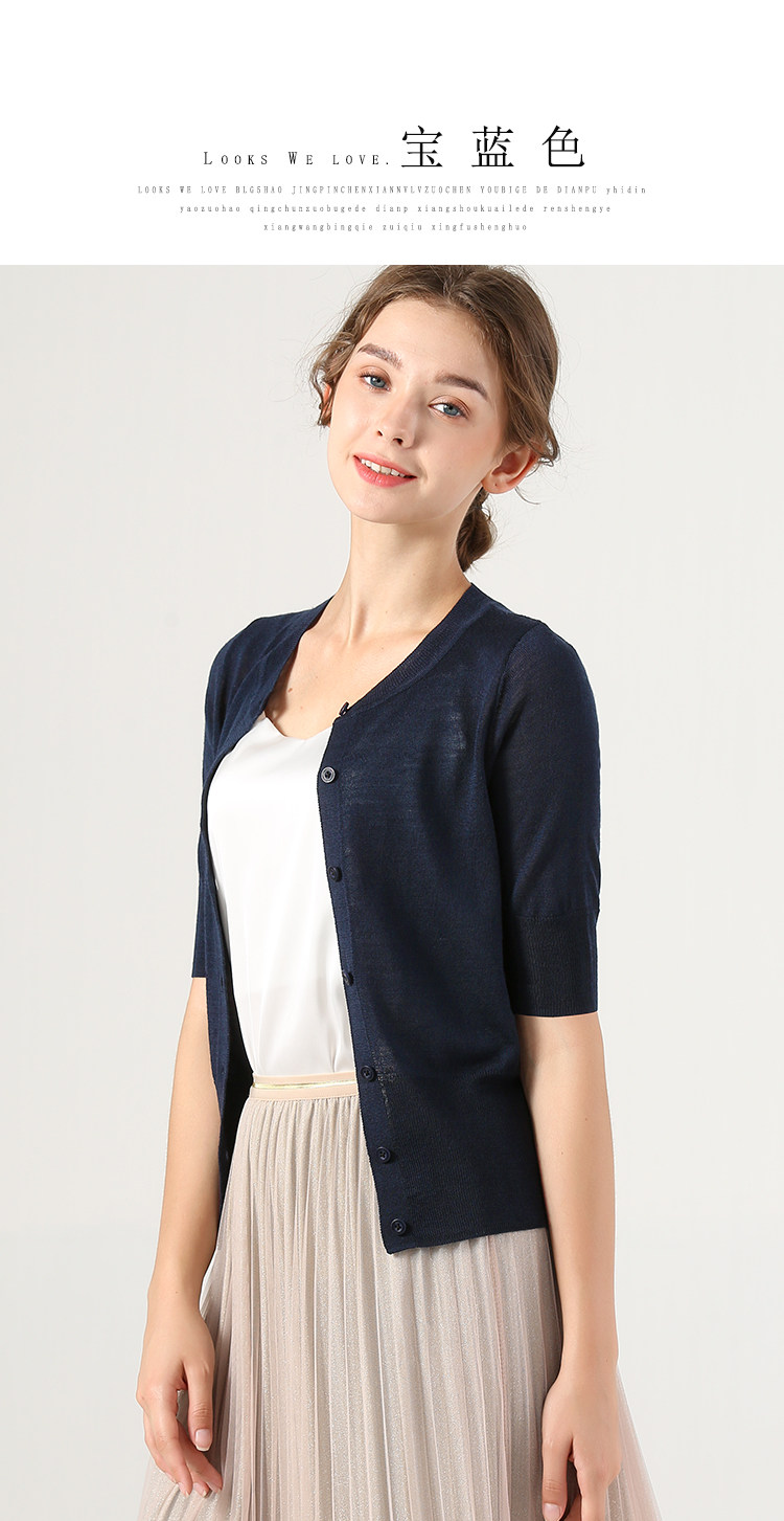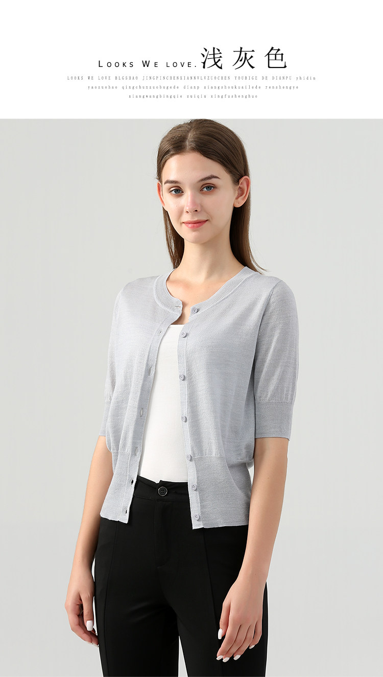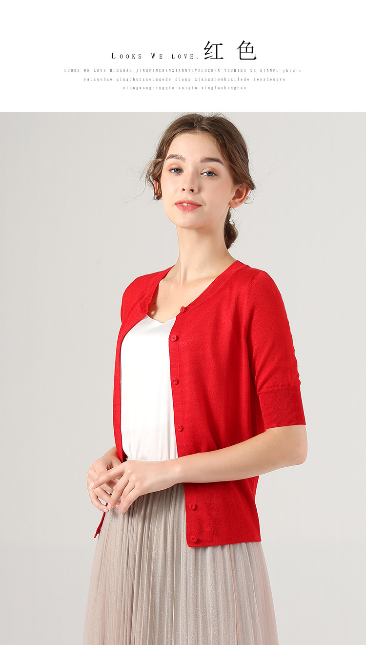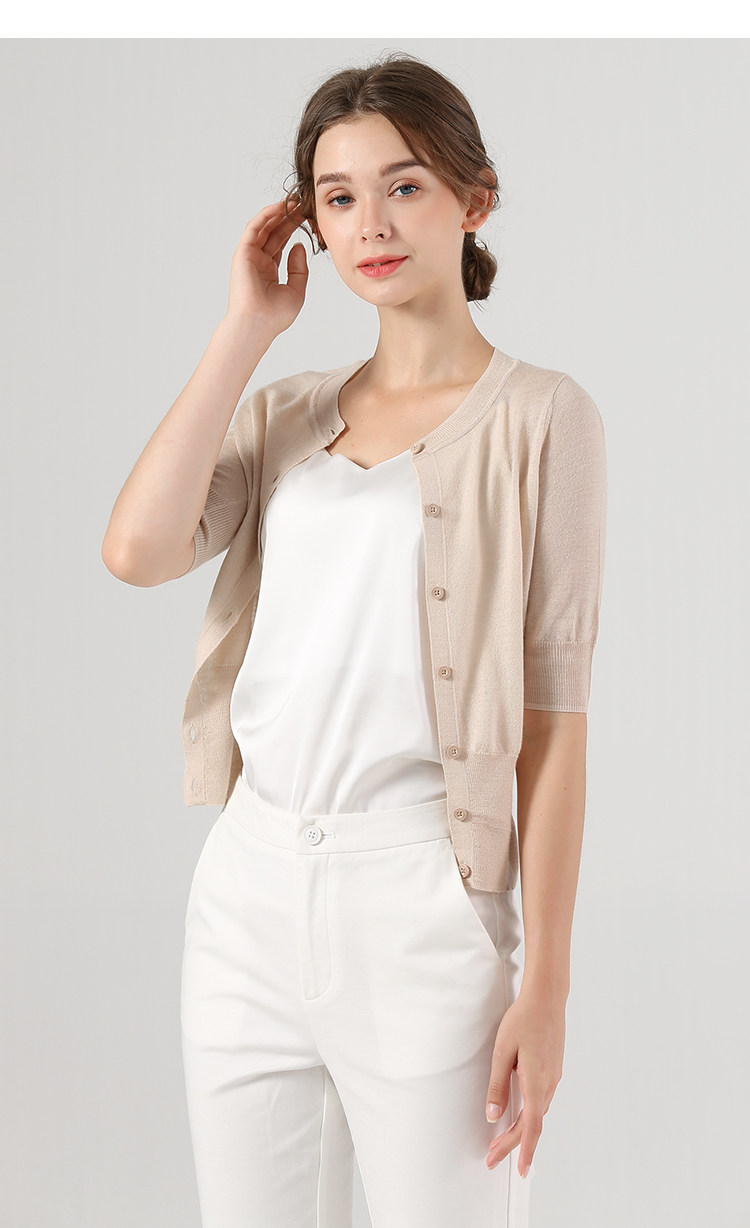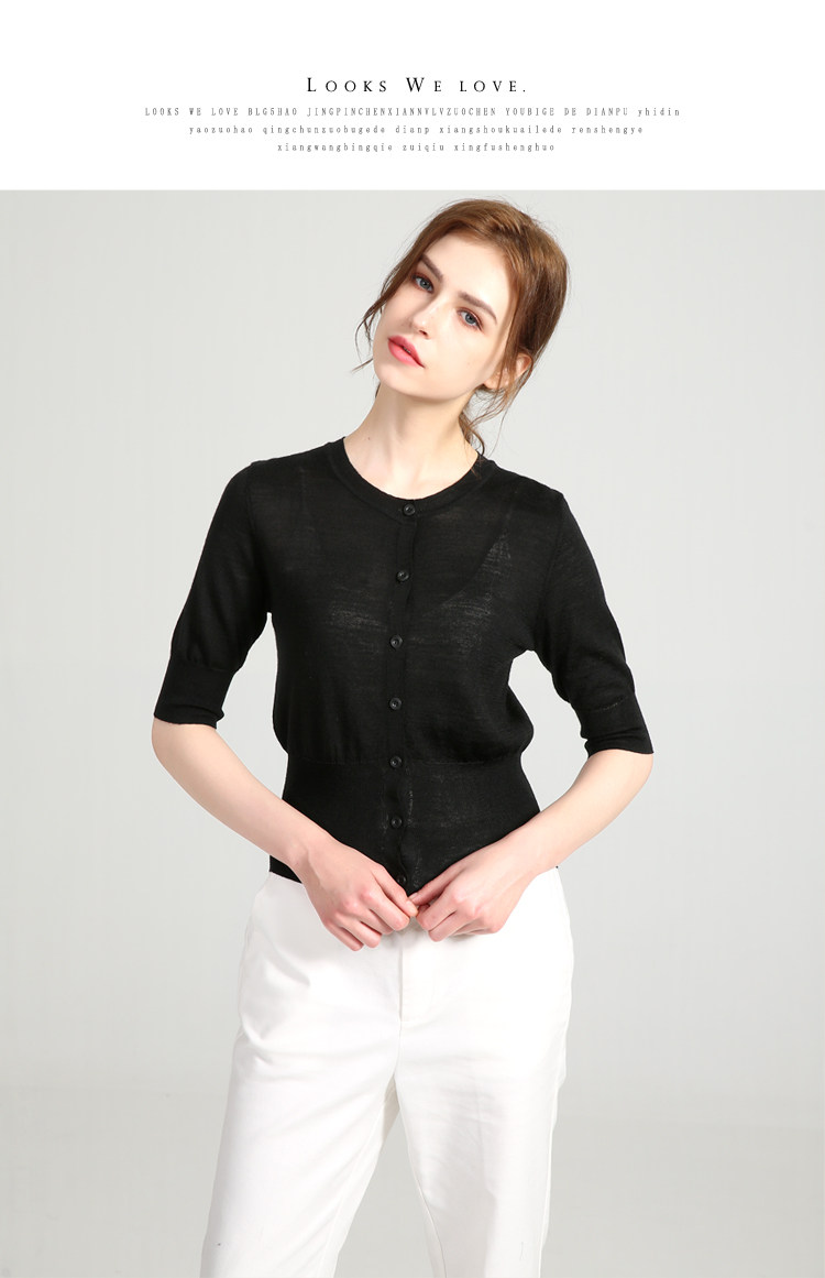 復古,美的內在氣質 短款,小圓領,自帶高腰線 上身效果顯高,顯瘦 針織衫小開衫,即是小外套,也是貼身上衣 超薄面料,舒適親膚,夏天穿涼爽透氣。