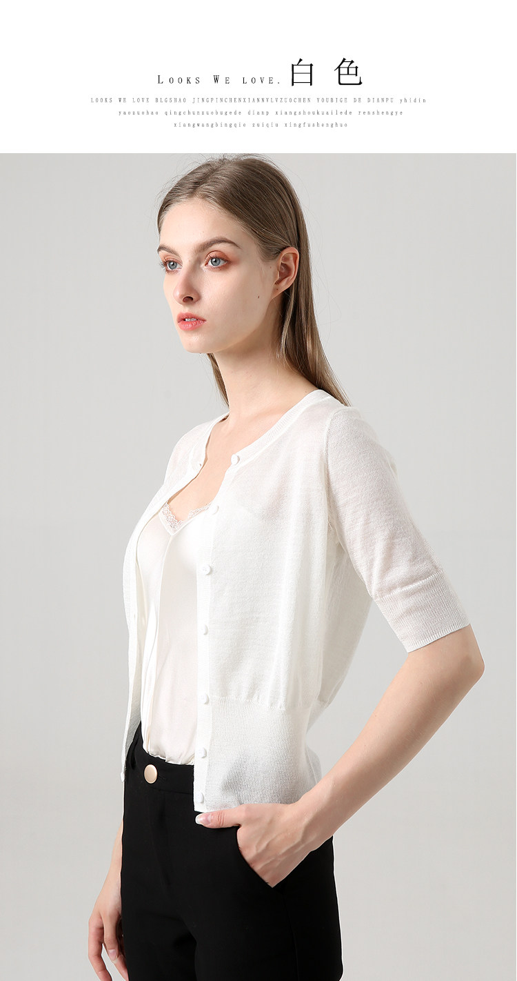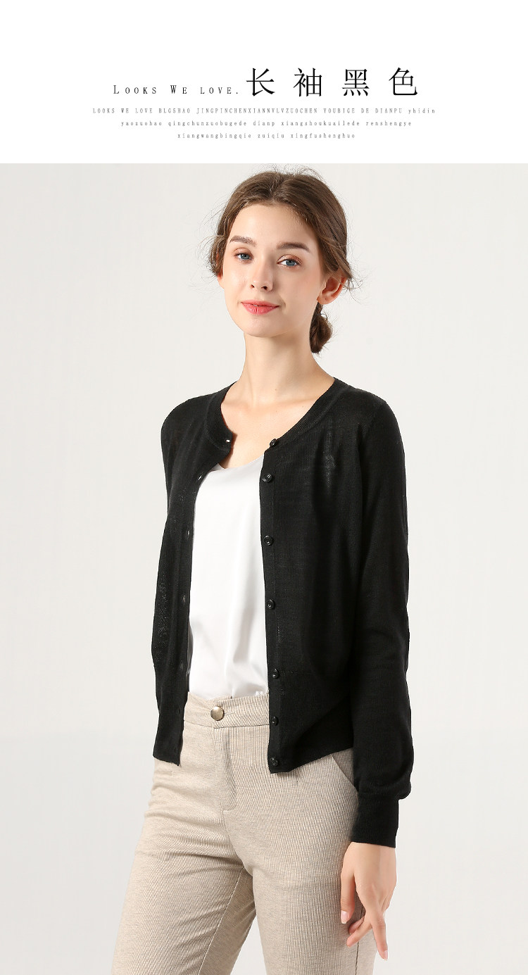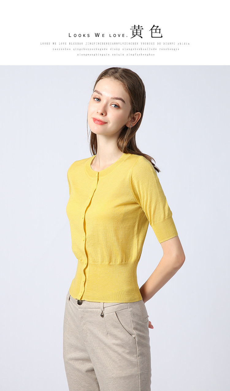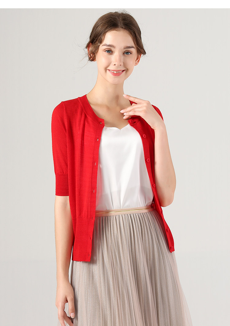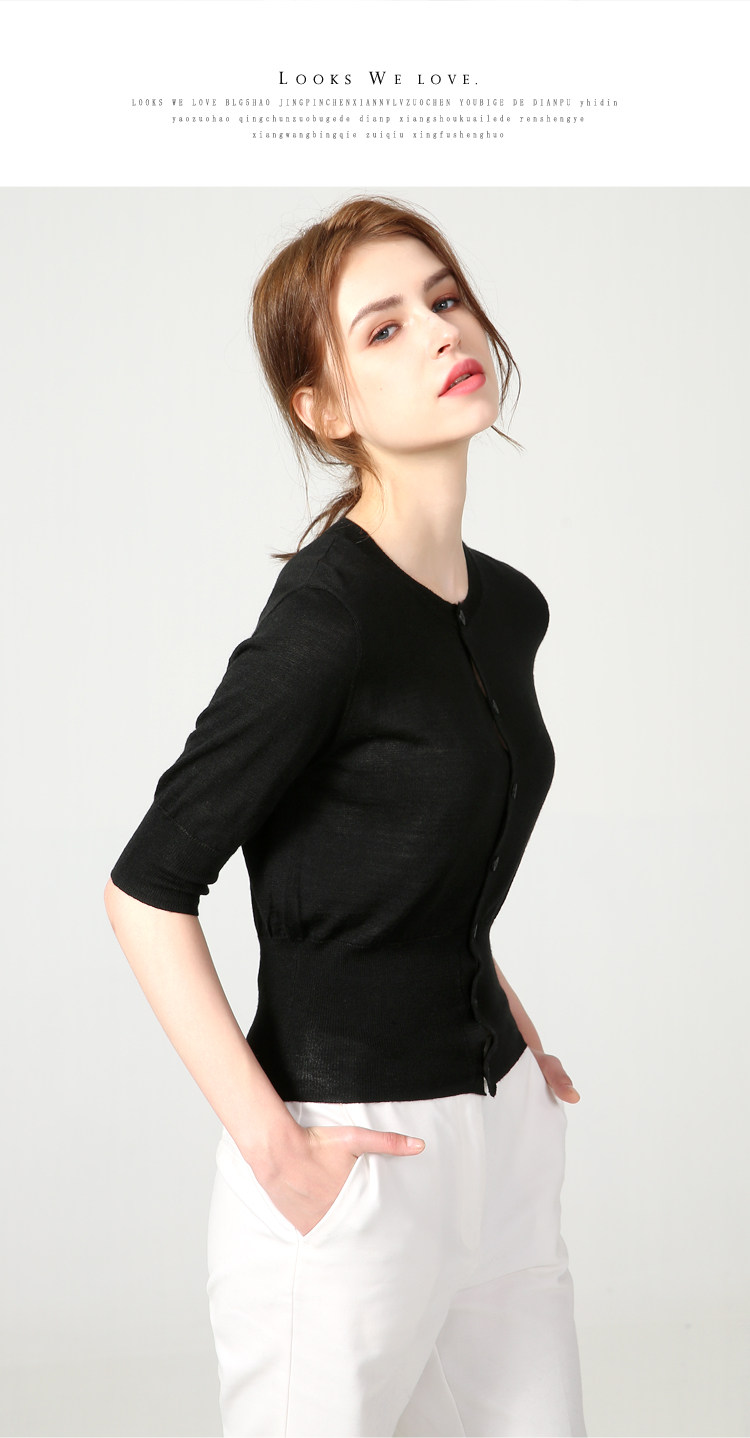 復古,美的內在氣質 短款,小圓領,自帶高腰線 上身效果顯高,顯瘦 針織衫小開衫,即是小外套,也是貼身上衣 超薄面料,舒適親膚,夏天穿涼爽透氣。